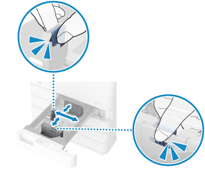 ロック解除レバーをつまみながら、用紙ガイドを動かす