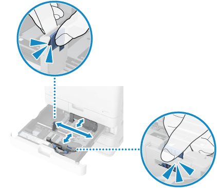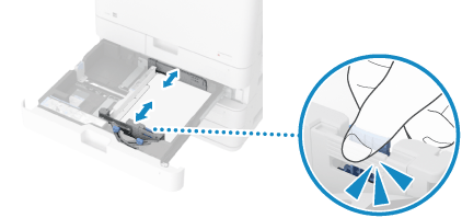 ロック解除レバーをつまみながら、用紙ガイドを用紙の幅に合わせます。