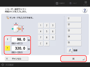 よく使用する定形外サイズの用紙を登録している場合は、[S1]~[S5]を押して呼び出すことができます。