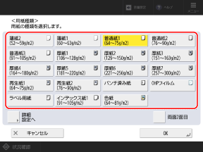 [詳細設定へ]を押し、表示された一覧から用紙種類を選択します。
