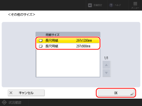 セットした長尺紙のサイズを選択し、[OK]を押す