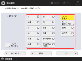 [手差し用紙のデフォルト設定]画面に戻ります。