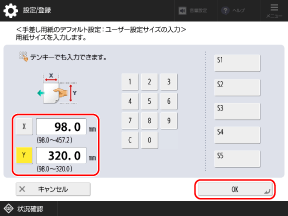 よく使用する定形外サイズの用紙を登録している場合は、[S1]~[S5]を押して呼び出すことができます。