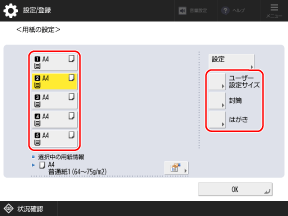 用紙サイズと用紙種類が設定されます。