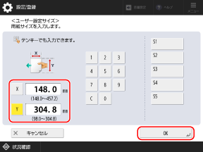 よく使用する定形外サイズの用紙を登録している場合は、[S1]~[S5]を押して呼び出すことができます。