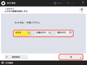 セットしたはがきのサイズを選択し、[OK]を押す