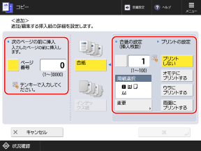 ※挿入する用紙にプリントする場合は、入力したページ番号の原稿がプリントされます。