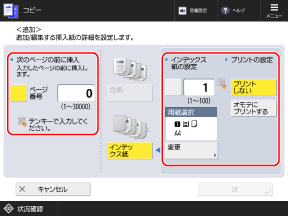 合紙とインデックス紙は同じページ番号に挿入できます。その場合は、「合紙、インデックス紙」の順で挿入されます。