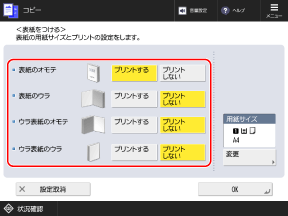 表紙にプリントするかどうかを選択する
