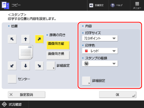 [印字種類]を押すと、印字する方法(すかし印字または重ね印字)を変更できます。