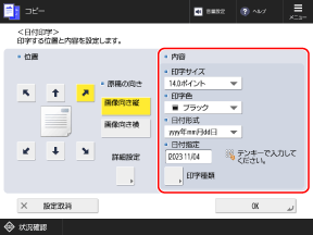 文字の書式や印字する日付を設定します。