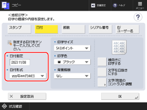 初期設定では、本機に設定されている日付が入力されています。別の日付を付けたい場合は、テンキーで入力します。