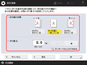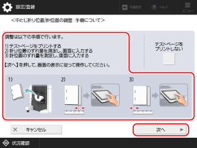 テストページで折り位置の状態とずれ量を確認して設定します。
