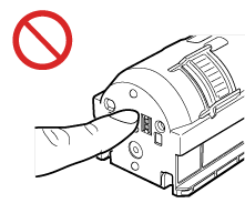 トナーカートリッジの先端部に触れたり、ぶつけて衝撃を与えたりしないように注意してください。トナーが漏れることがあります。