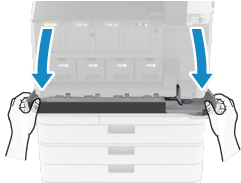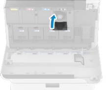 本体前カバーを開けると、交換するトナーカートリッジの交換口のフタ(小カバー)が自動的に開きます。小カバーは手動で開けないでください。破損するおそれがあります。