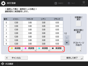 テストページの色見本から目視で濃度値(調整値)を判断し、各番号に濃度値を入力します。