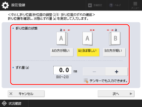 折り位置を左に移動する場合は[+]に、折り位置を右に移動する場合は[-]に設定します。