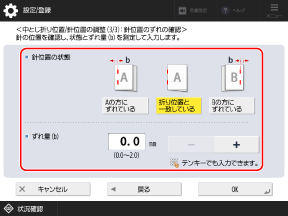 テストページで折り位置の状態とずれ量を確認して設定します。