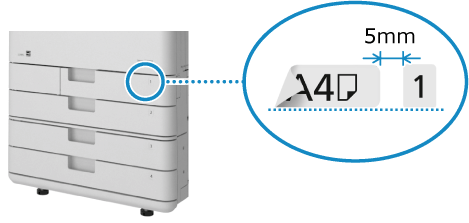用紙サイズを示すラベルを貼っておくと、各給紙カセットにセットされている用紙がわかりやすくなります。