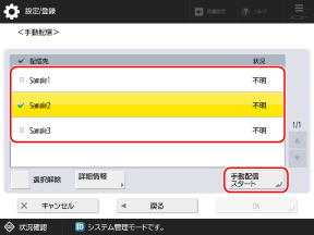 手動配信は、操作パネルを使用して行います。パソコンからリモートUIを使用して手動配信することはできません。