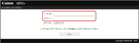 ※ユーザー認証を利用していない場合は、すぐにポータル画面が表示されるため、そのまま操作できます。リモートUIのポータル画面