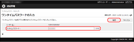 ワンタイムパスワードの入力画面が表示された場合