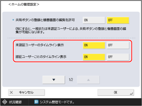 ※高速起動の設定を無効にして本機の電源を切った場合、または高速起動できなかった場合は、この項目の設定にかかわらず、未認証ユーザー共通のタイムラインは表示されません。