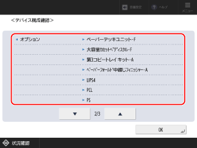 本機に装着しているオプション機器の名称やオプション機能を確認できます。
