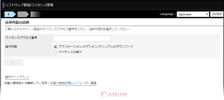 パソコンのWebブラウザーで、以下のURLにアクセスし、画面の指示に従ってライセンスファイルを取得します。