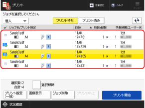 ※複数の文書を選択した場合は、文書を選択した順(チェックマークの番号順)にプリントされます。