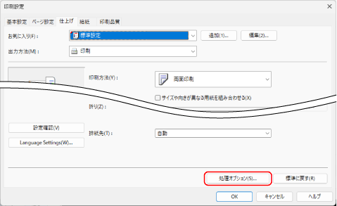 [仕上げ]タブで、[処理オプション]をクリックする
