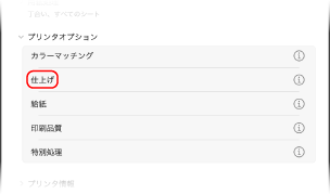 [プリンタオプション][仕上げ]をクリックする