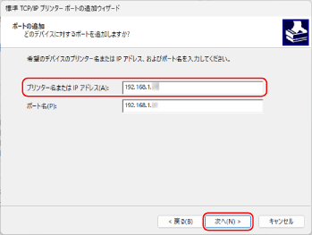 [標準TCP/IPプリンターポートの追加ウィザード]画面が表示されます。