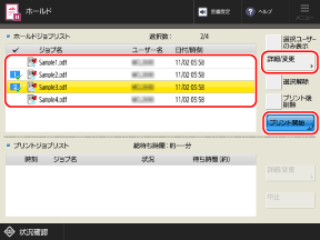 ホールドされた文書の内容を確認したり、試しプリントで仕上がりを確認したりしてからプリントを実行します。不要になったホールド文書を削除することもできます。
