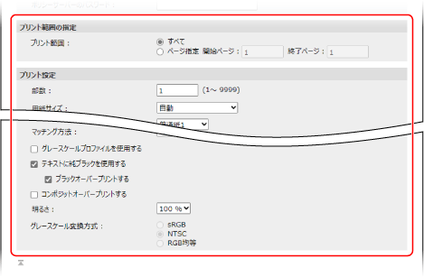 ※転送中に[プリント開始]を連続してクリックしないでください。転送に失敗する場合があります。
