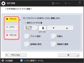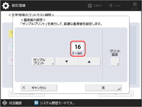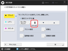 サンプルプリントが出力されて、[文字/背景のコントラスト調整]画面に戻ります。