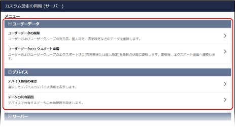 リモートUIのポータル画面[カスタム設定の同期 (サーバー)]画面が表示されます。