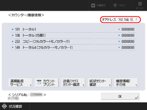 IPv4アドレスの場合は、以下の手順で[カウンター/機器情報]画面で確認することもできます。