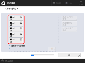 [用紙の設定]画面で、セットした用紙のサイズが表示されていることを確認する