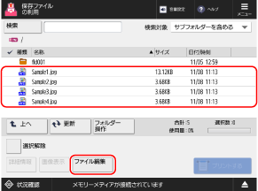 削除するファイルを選択し、[ファイル編集]