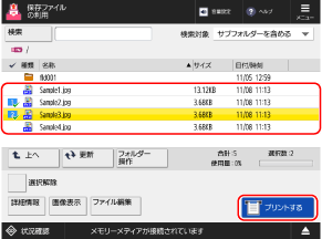 ※複数のファイルを選択した場合は、ファイルを選択した順(チェックマークの番号順)にプリントされます。