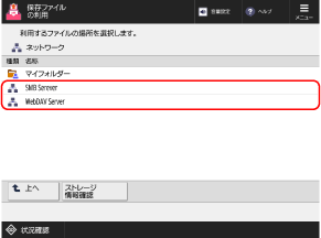 [ストレージ情報確認]を押し、接続先を選択して[詳細情報]を押すと、接続先のプロトコルやパスを確認できます。