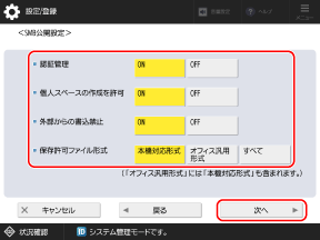 使用時にユーザー認証を行うように設定したり、各ユーザー専用の保存領域として使用できる「個人スペース」の作成を許可するように設定したりすることもできます。