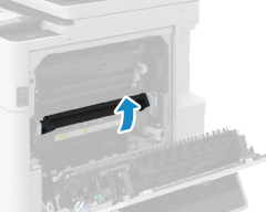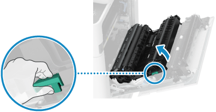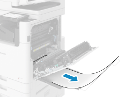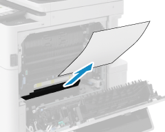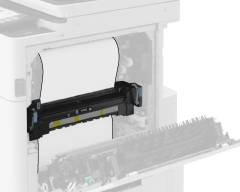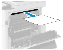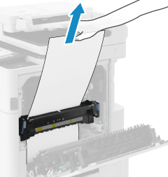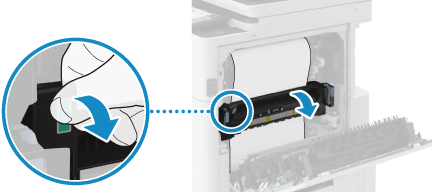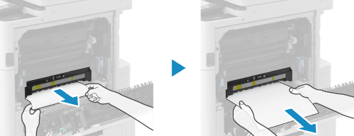 いったん定着器を閉めて、下側から用紙をゆっくり引き抜きます。