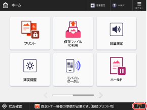 状況確認]を押し、[消耗品/その他]で用紙設定を確認します