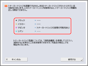 操作パネルの画面にメッセージが表示された場合は、以下の一覧からメッセージを選択して、対処方法を確認します。