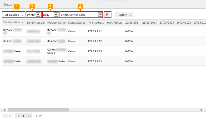 | Select [Warnings/Errors/Service Calls], [Errors/Service Calls], [Service Calls], [Unpowered/Unresponsive], or [Unresponsive] as the status to total. |