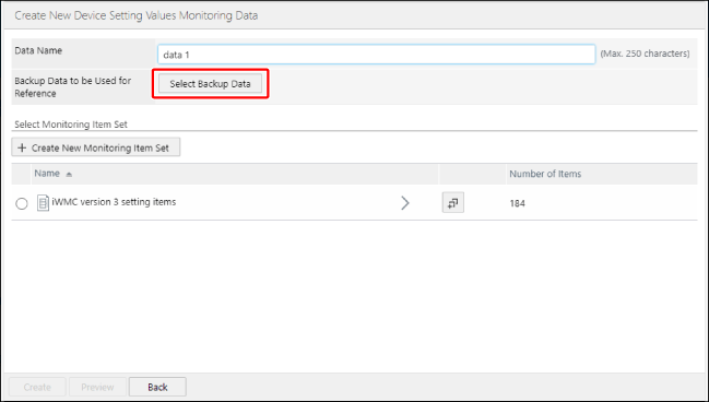 The items included in the monitoring item set created here are used to create the monitoring data by extracting them from the backup data.