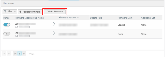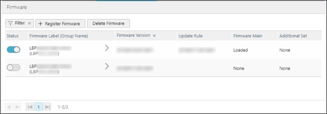 [Firmware Label (Group Name)] | Displays the firmware group name. If you click the firmware group name, the [Firmware Details] page is displayed and you can check the information of the firmware. |