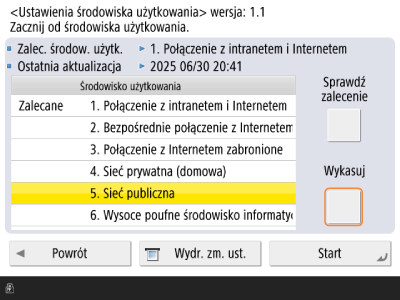 Wyświetlony zostanie ekran <Zalecane ust. zabezp. dla środowiska użytkowania>.